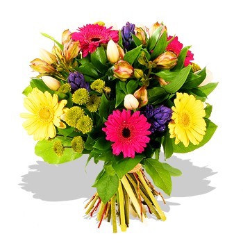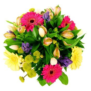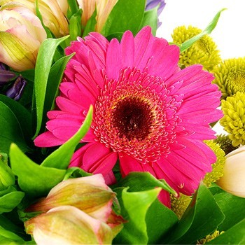 With beautifully vibrant colours and a certain dreamy individuality, our sweet dreams bouquet of hot pink and yellow gerbera’s, chrysanthemums, ,alstromerias and exotic greens will surely bring a smile to the recipients face.