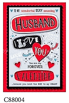 Boxed card. To my wonderful sexy amazing husband. I love you. You are my forever Valentine. You hold the key to my heart.